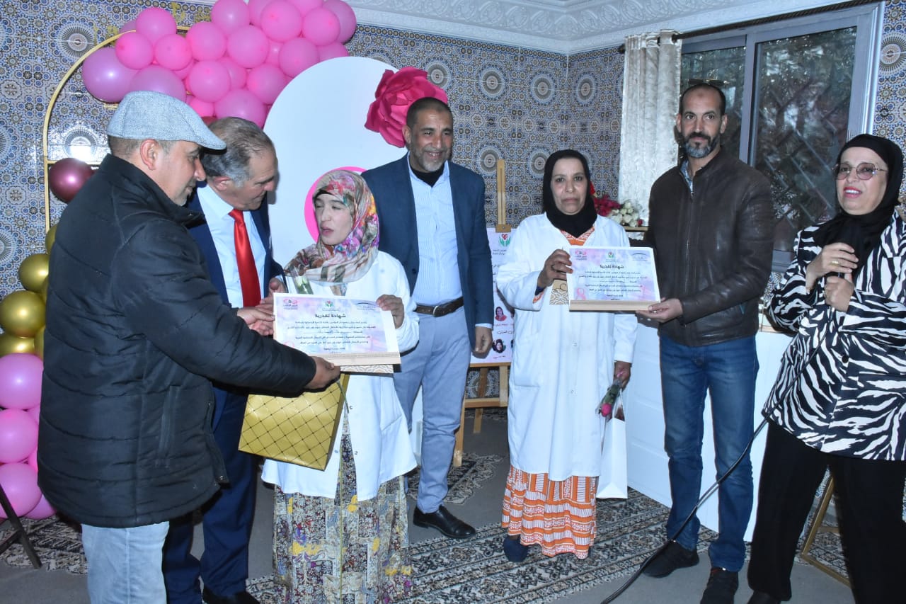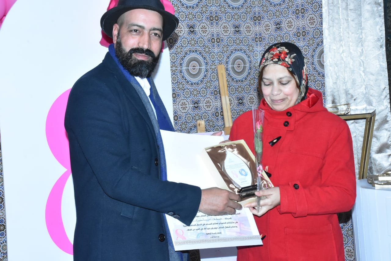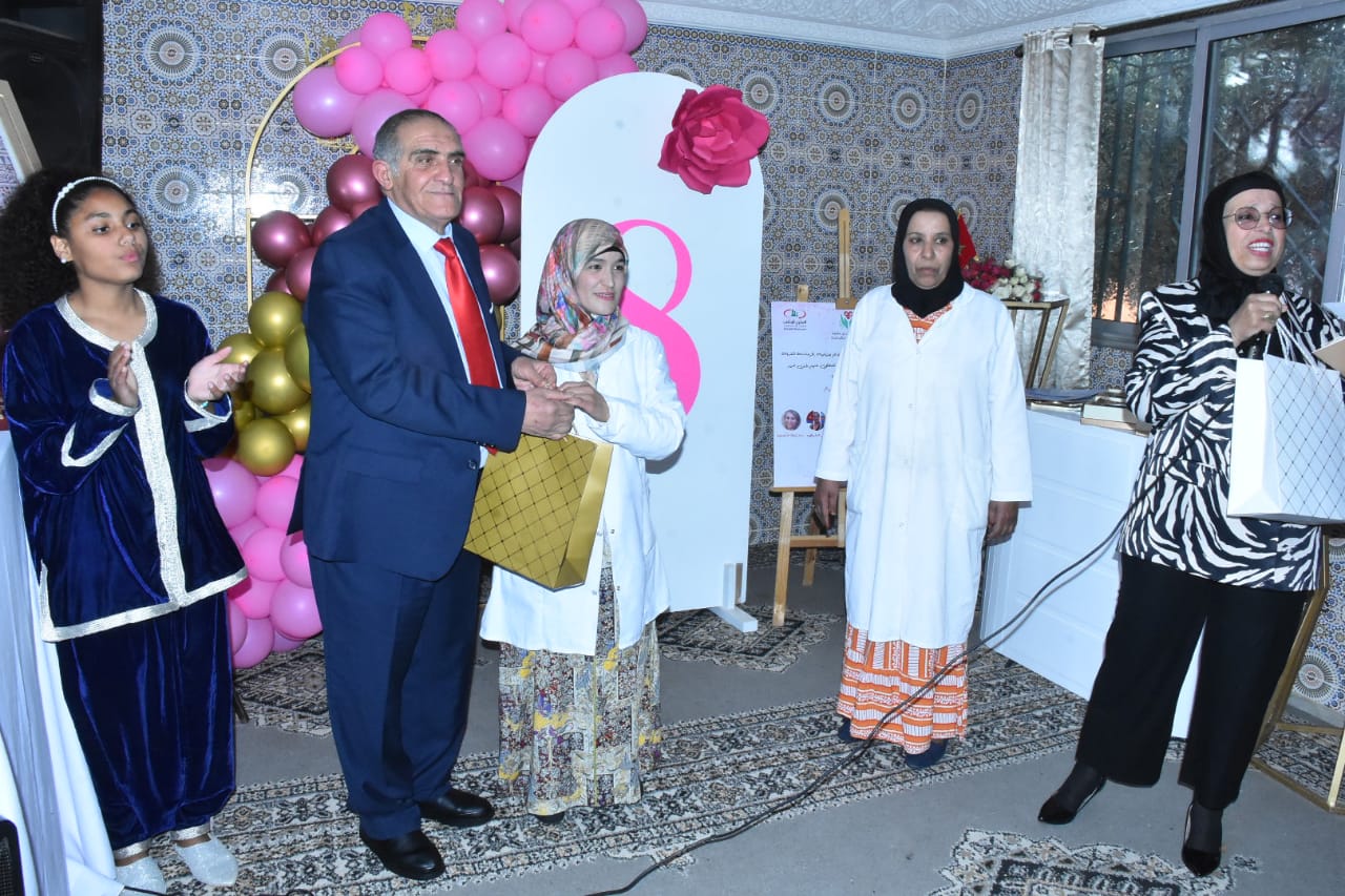 دأبت جمعية ام المؤمنين عائشة للاطفال المتخلى عنهم  بمدينة ابن جرير على الاحتفال وتخليد جميع الاعياد الدينية و الوطنية ولم يفوتها كل عام الاحتفاء باليوم الاممي للمرأة الذي يصادف 8 مارس من كل سنة . مساء السبت 9 مارس 2024 كان مركز ام المؤمنين عائشة قبلة لمجموعة من المسرحيين والفنانين المغاربة لمشاركة اطفال المركز الاحتفاء بهذا اليوم العالمي ، وبالمناسبة تم تكريم جل العاملات بالمركز والصحفية نجاة حسني ، علاوة على  عضوة بالجمعية،  موظفة بالمحكمة الابتدائية بابن جرير ، تم توشيحهن ،  بهدايا وورود  رمزية منتقاة بعناية ،  عربونا عن المحبة والوئام والعشرة الطيبة  ، وعرفانا بالخدمات الجليلة التي تسديه هاته النسوة للناشئة والمجتمع عامة . وفي مبادرة لها عدة دلالات رمزية وعميقة ابى اصدقاء المركز من الفنانين الا ان يكرموا رئيسة الجمعية والمسؤولية عن المركز “محجوبة اورير ” لحظة تفاعل معها الاطفال بالزغاريد والتصفيق والقاء الاناشيد العاطفية ومناداة المكرمة بماما ماما ماما محجوبة ….الحفل حضره قائد الملحقة الأولى بمدينة ابن جرير ومجموعة من فاعليين السياسين والجمعويين  . وختم الحفل بتقديم لوحات غنائية راقصة  من تقديم نزلاء المركز من الاطفال ، مشهد مؤثر تفاعل معها الحضور بكل تلقائية لانها تجسد براءة الأطفال وانخراطهم بعفوية وتلقائية رغبة منهم في تحقيق  الابداع والتميز والتفرد في الاداء من خلال الحركات الجسدية  التعبيرية او الكورال الصوتي الطفولي الجميل والبريئ .
