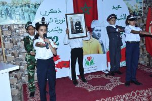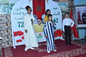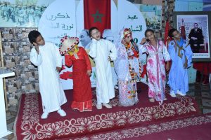 بحضور عامل إقليم الرحامنة أطفال مركز المتخلى عنهم بابن جرير ، يخلدون مناسبة ثورة الملك والشعب وعيد الشباب المجيد .