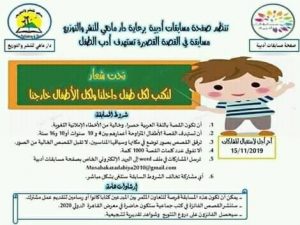 بالتنسيق مع دار ماهي للنشر و التوزيع المصرية، يعلن مدير صفحة “مسابقات أدبية” السيد أحمد الناموسي، الكاتب و القاص المغربي صاحب رواية “انتقام بريء”، عن افتتاح مسابقة في مجال القصة القصيرة و تخص أدب الطفل المتراوح عمره ما بين الرابعة و التاسعة.