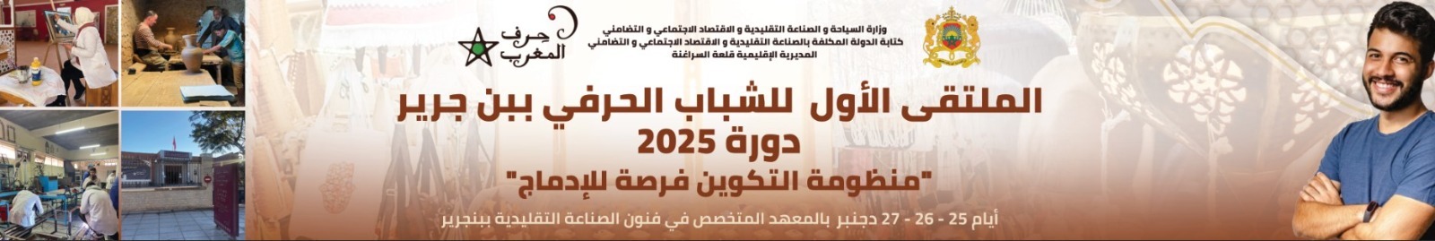 تحتضن مدينة ابن جرير، خلال أيام 25 و26 و27 دجنبر 2025، فعاليات الملتقى الأول للشباب الحرفي بين جرير، المنظم تحت شعار: