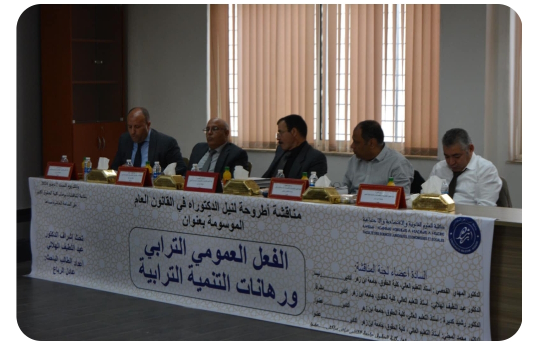 ناقش الطالب الباحث المجد و المثابر ،الرحماني المولد “عادل الرباع ” اطروحة الدكتوراه في القانون العام بجامعة ابن زهر بمدينة أكادير تحت عنوان ” الفعل العمومي الترابي ورهانات التنمية الترابية ” ، وقد نال الطالب  شهادة الدكتوراه بميزة مشرف جدا ، ومما يثلج الصدر ان هذا الطالب كان في سنوات خلت من بين تلاميذتي النجباء بمدرسة الشعيبات ، والجميل انه شاركني فرحته عند نيله هذا الاستحقاق بخطاب جد مؤثر ، رغم طول فراق المدة بيننا .