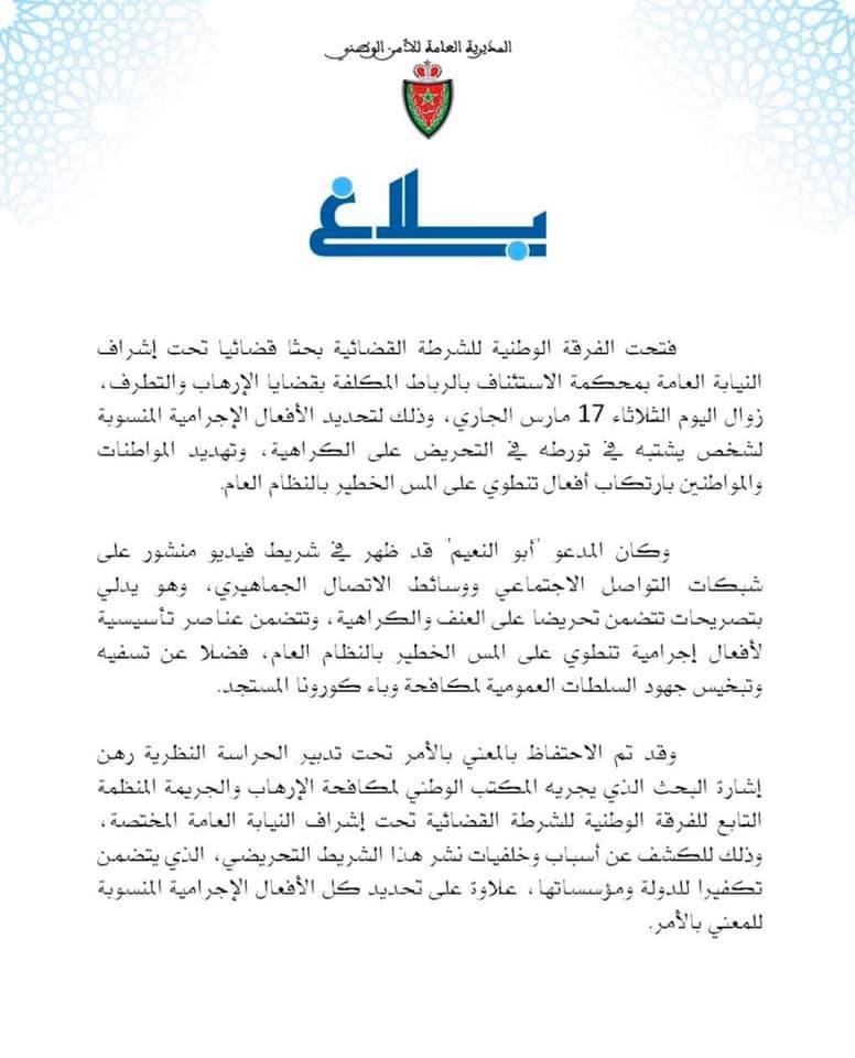ابو النعيم متهم بالمس الخطير بالنظام العام .