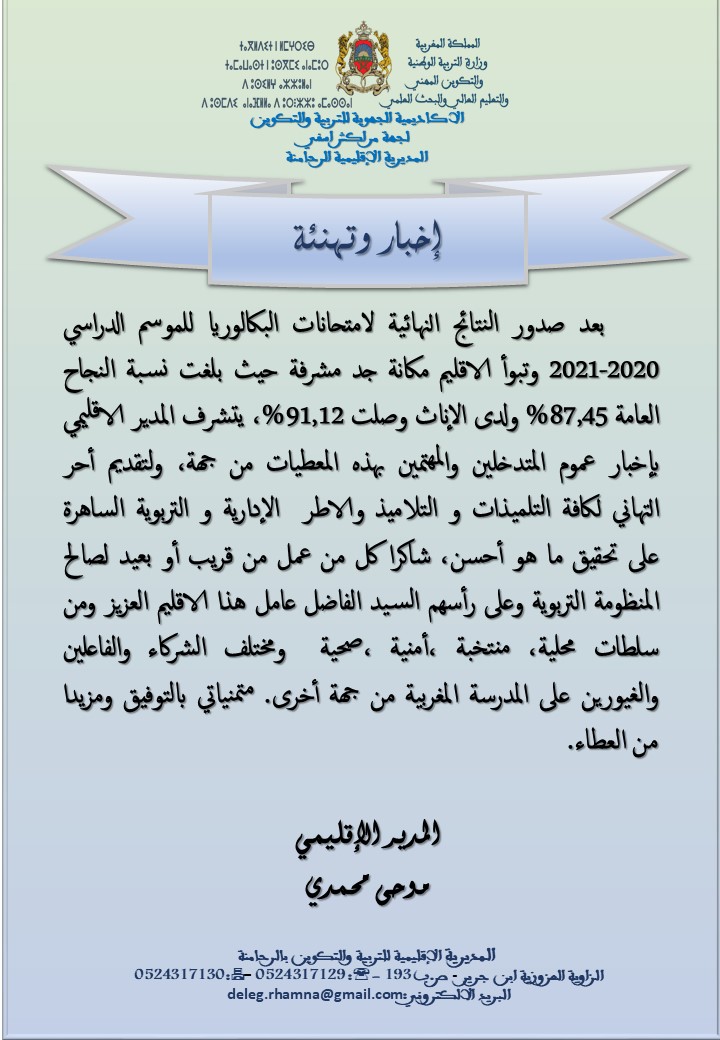 اقليم الرحامنة : المدير الاقليمي للتربية والتكوين يهنئ جميع المتدخلين في الحقل التربوي.