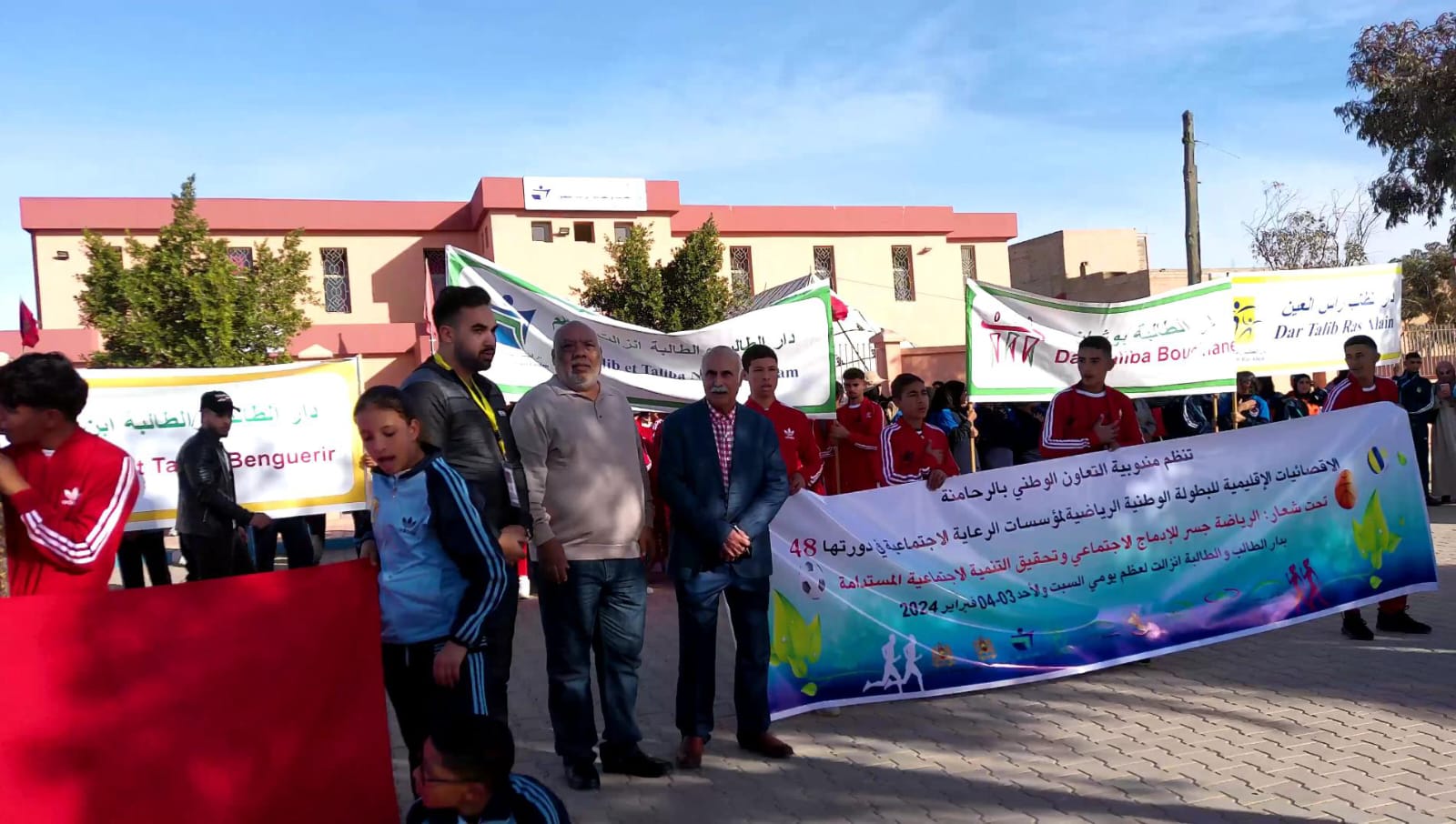 انطلقت مساء يوم السبت 3 فبراير 2024 بجماعة مازالت لعظم اقليم الرحامنة فعاليات الاقصائيات الإقليمية للبطولة الوطنية لمؤسسات الرعاية الاجتماعية في دورتها 48 ، من تنظيم مندوبية التعاون الوطني باقليم الرحامنة ،ى تحت شعار “الرياضة جسر للإدماج الاجتماعي وتحقيق التنمية الاجتماعية المستدامة ” الاقصائيات ستدور اطوارها على مدى يومين 3 و4 فبراير 2024 . وقد أعطى انطلاقتها مندوب التعاون الوطني بنفس الإقليم السالف الذكر * السيد عبد الغني فرقي * الاقصائيات تشمل عدة أنواع رياضية كرة القدم ، واليد ،والسلة ، وكرة الطائرة ثم السباق على الطريق ذكورا واناثا . وقد عرفت الدورة مساهمة عدة شركاء اهمهم عمالة الرحامنة ،ومكتب الفوسفاط ، وجمعية الرحامنة للرعاية الاجتماعية ، من اجل ترسيخ قيم التعاون والتكافل والتآزر الاجتماعين ، وتحقيق الهدف الاسمى والنبيل ، وهو ان الطالبة والطالب بهذه الدور الاجتماعية بالرحامنة ، هم المحور والغاية وعماد الأمة .