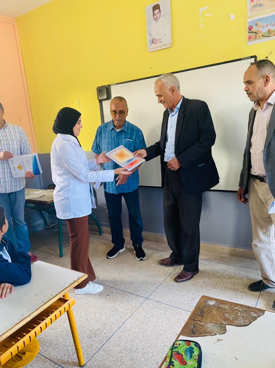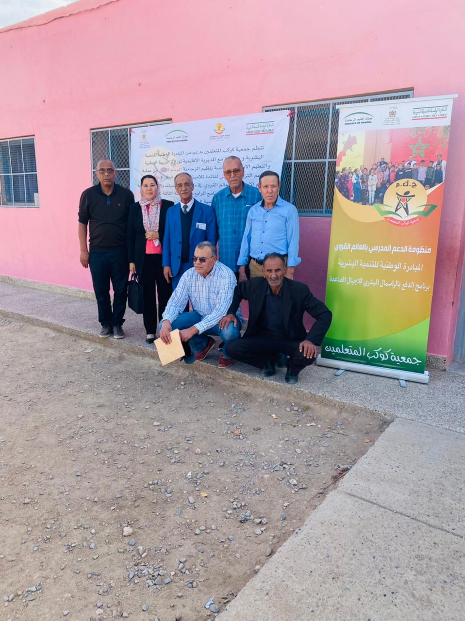 المدير الإقليمي للتربية بالرحامنة يقص شريط انطلاقة الدعم التربوي ، بحضور اعضاء جمعية كوكب المتعلمين الحاملة للمشروع .