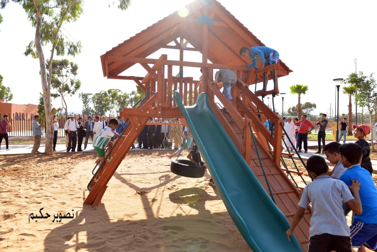تضم عدة مرافق في غاية الجمالية ، ملعب للقرب ، وفضاء لألعاب الاطفال ،ومدرج لفن مسرح الشارع والحكواتي ، ومحطة للويفي وشحن الهواتف ، المشروع من انجاز عمالة اقليم الرحامنة وبشراكة مع كتابة الدولة المكلفة بالبيئة ،و المجلس الجماعي لمدينة سيدي بوعثمان، رئيس مصلحة الاشغال بعمالة الرحامنة الذي يعتبر بحق الرجل المناسب في المكان المناسب في المواكبة والتتبع للمشاريع التنموية التي يعرفهااقليم الرحامنة، قدم شروحات لعامل الاقليم والوفد المرافق له عن اهمية المشروع وغايته ، والاهداف المستقبلية لمدينة في طور النماء والتعمير ،