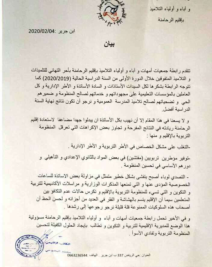 0 شارك رابطة جمعيات امهات وآباء واولياء التلاميذ بالرحامنة صدر بيانا. 0 شارك FacebookTwitterWhatsAppالبريد الإلكترونيLinkedinTelegramطباعة