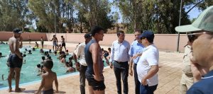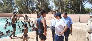 واختتم السيد العامل جولته بزيارة المسبح الجماعي بمركز صخور الرحامنة، حيث اطلع على ظروف استقبال الأطفال والمستفيدين، موجها تعليماته للسلطات المحلية والأمنية من أجل توفير كافة شروط السلامة والنظافة والتنظيم، حتى تظل هذه المنشأة فضاءً آمناً وملائماً لممارسة الأنشطة الترفيهية والرياضية.