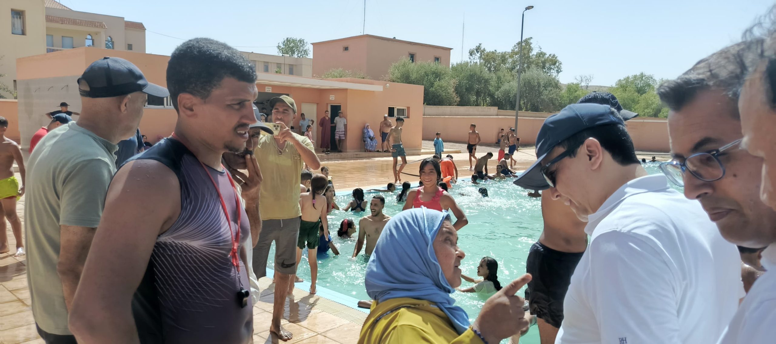واختتم السيد العامل جولته بزيارة المسبح الجماعي بمركز صخور الرحامنة، حيث اطلع على ظروف استقبال الأطفال والمستفيدين، موجها تعليماته للسلطات المحلية والأمنية من أجل توفير كافة شروط السلامة والنظافة والتنظيم، حتى تظل هذه المنشأة فضاءً آمناً وملائماً لممارسة الأنشطة الترفيهية والرياضية.