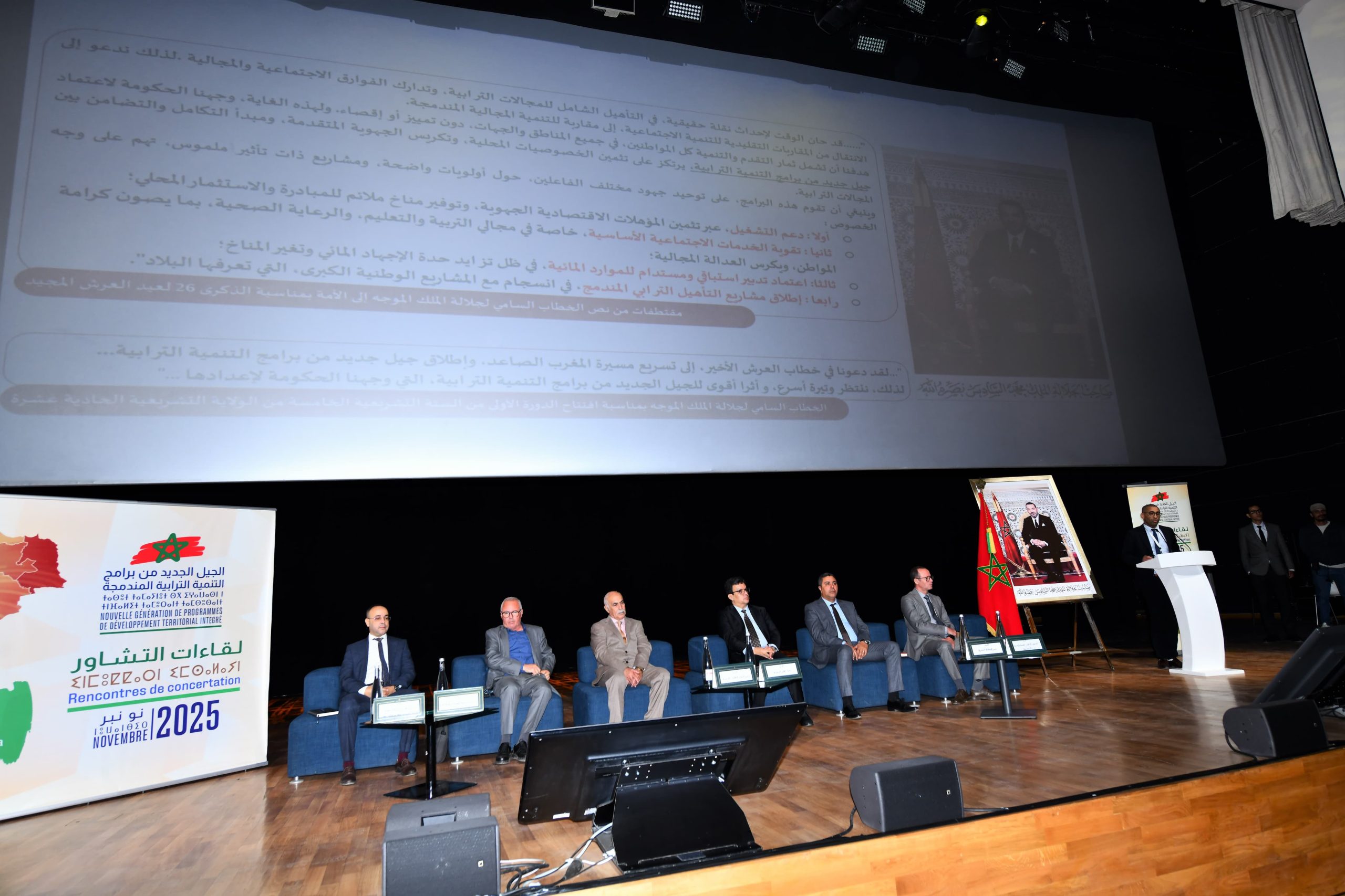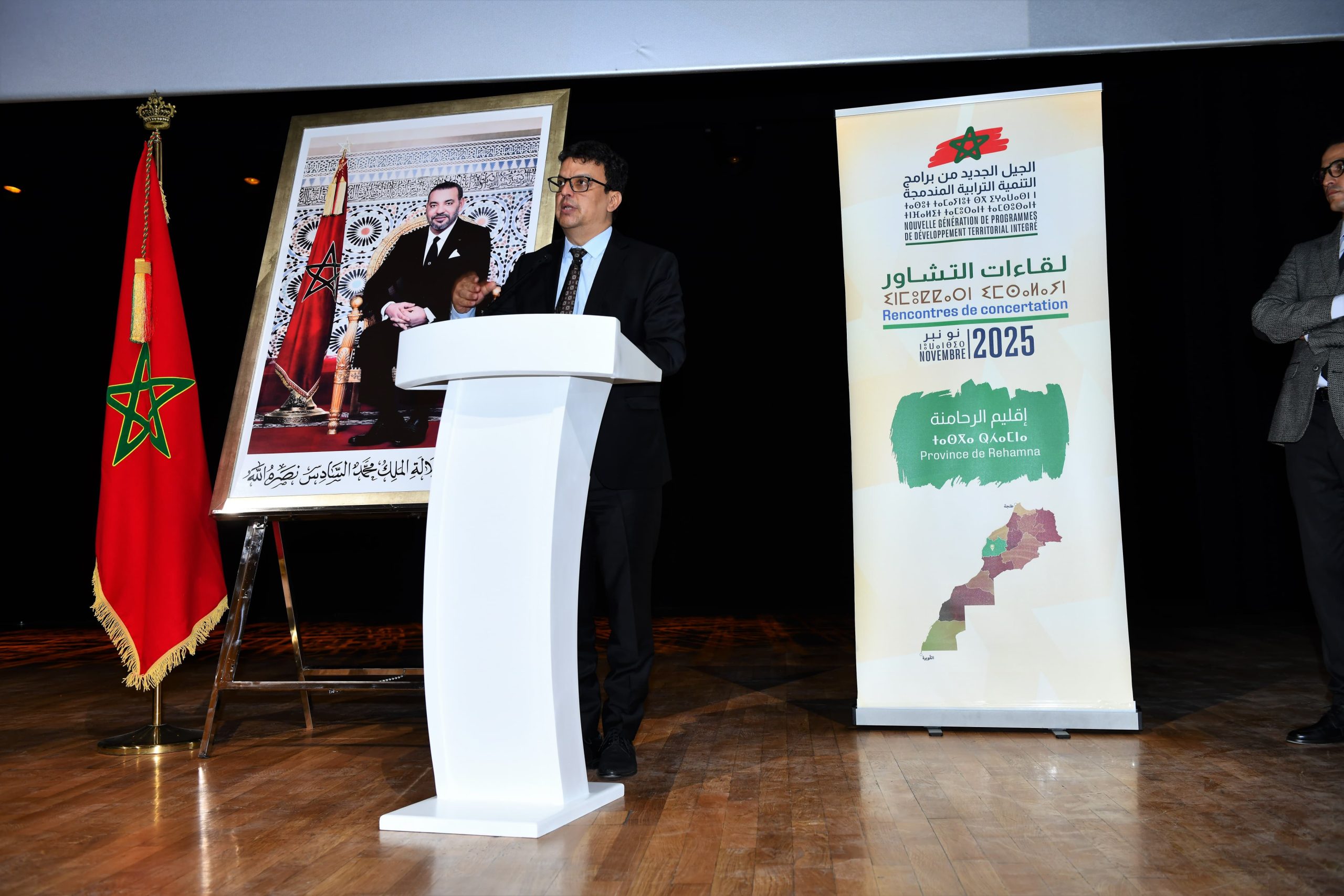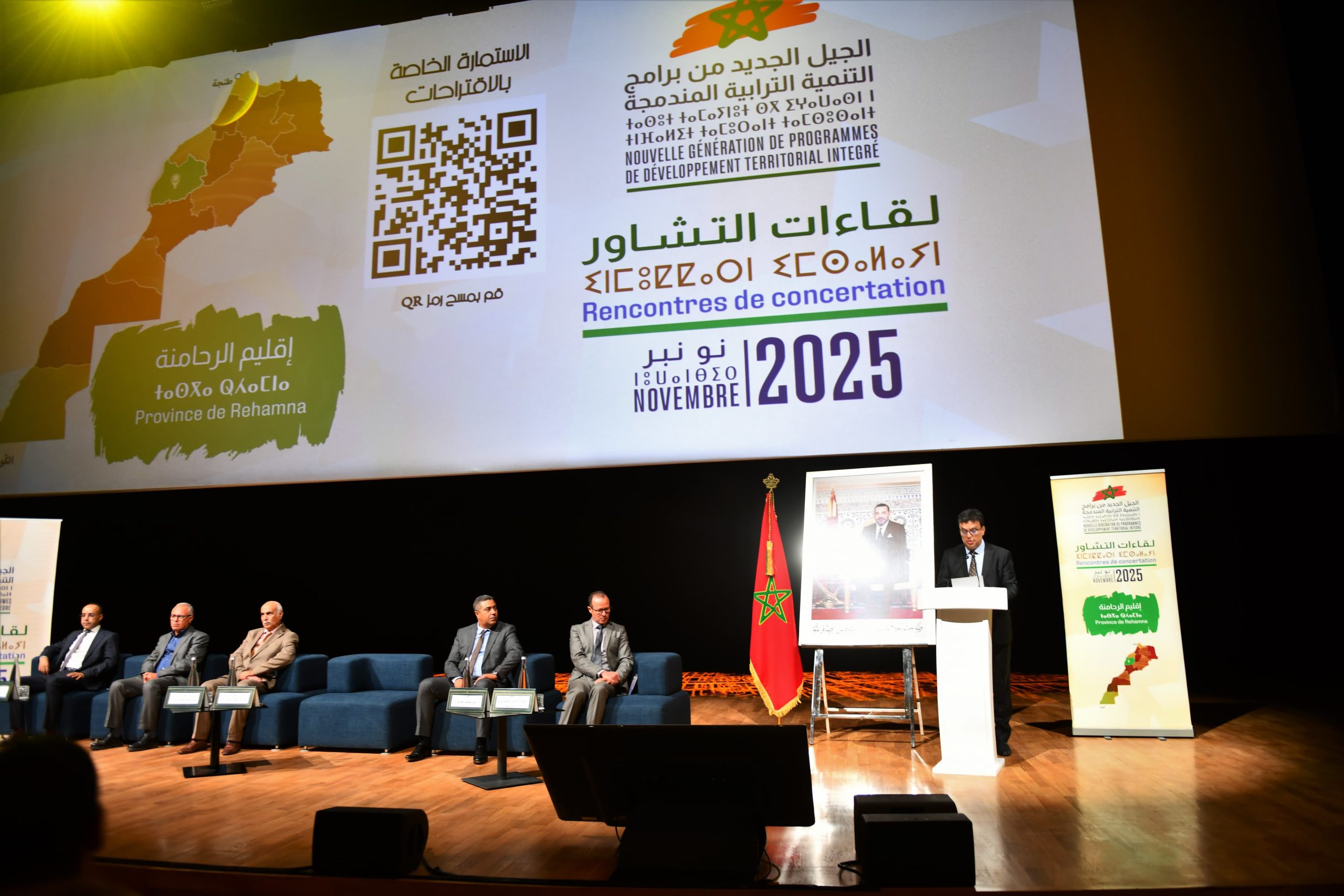 في إطار الدينامية الوطنية التي أطلقها صاحب الجلالة الملك محمد السادس نصره الله وأيده، والرامية إلى إعداد جيل جديد من برامج التنمية الترابية المندمجة، نظمت عمالة إقليم الرحامنة، بمدرج ابن رشد بجامعة محمد السادس متعددة التخصصات بابن جرير، يوم الثلاثاء 11 نونبر 2025 ابتداءً من الساعة التاسعة صباحاً، لقاءً تشاورياً موسعاً ترأسه السيد عزيز بوينيان، عامل الإقليم، بحضور ما يفوق 1000 مشارك من مختلف الفئات والهيئات المنتخبة، والسلطات المحلية، والمصالح اللاممركزة، والأكاديميين والخبراء، والفاعلين الاقتصاديين، وممثلي المقاولات الخاصة، والمجتمع المدني، إضافة إلى تلميذات وتلاميذ المؤسسات التعليمية والتكوين المهني.