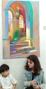 لوحات الفنانة التي تختلف حسب الأحجام والأشكال والمواضيع التي تطرحها، مرايا مصقولة، تعكس بكل أناقة فنية حالمة، الكثير من الألوان المبهرة، التي تم توظيفها بطريقة جذابة جعلت الجمهور متأملا، يطرح أكثر من سؤال.