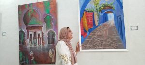 وأضافت “رسالتي في المعرض فنية، جمالية التزم فيها بإبراز مهن الفنان، وتبليغ الرسالة التشكيلية في حب الفن، والهوية والانتماء المغربي، من خلال العديد من الاشكال، منها الحلي، الجواهر، المرأة المغربية الوقورة، التي تستنبط قوتها من جذورها، كما استمد ألوان الزينة، والألوان الترابية المغربية من الطبيعة، وهدفي نبيل، لأن الفن هو المتعة، الحياة، ومدرسة تعلمنا الشيء الكثير“.