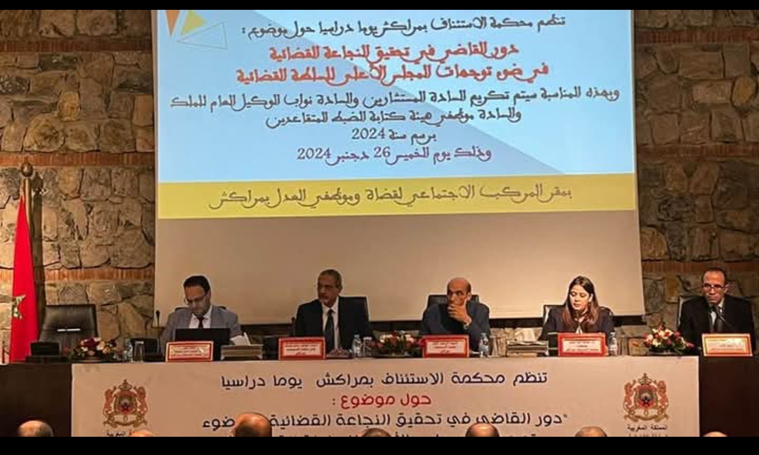 محكمة الاستئناف بمراكش : يوم دراسي حول  دور القاضي في تحقيق النجاعة القضائية في ضوء توجهات المجلس الأعلى للسلطة القضائية”
