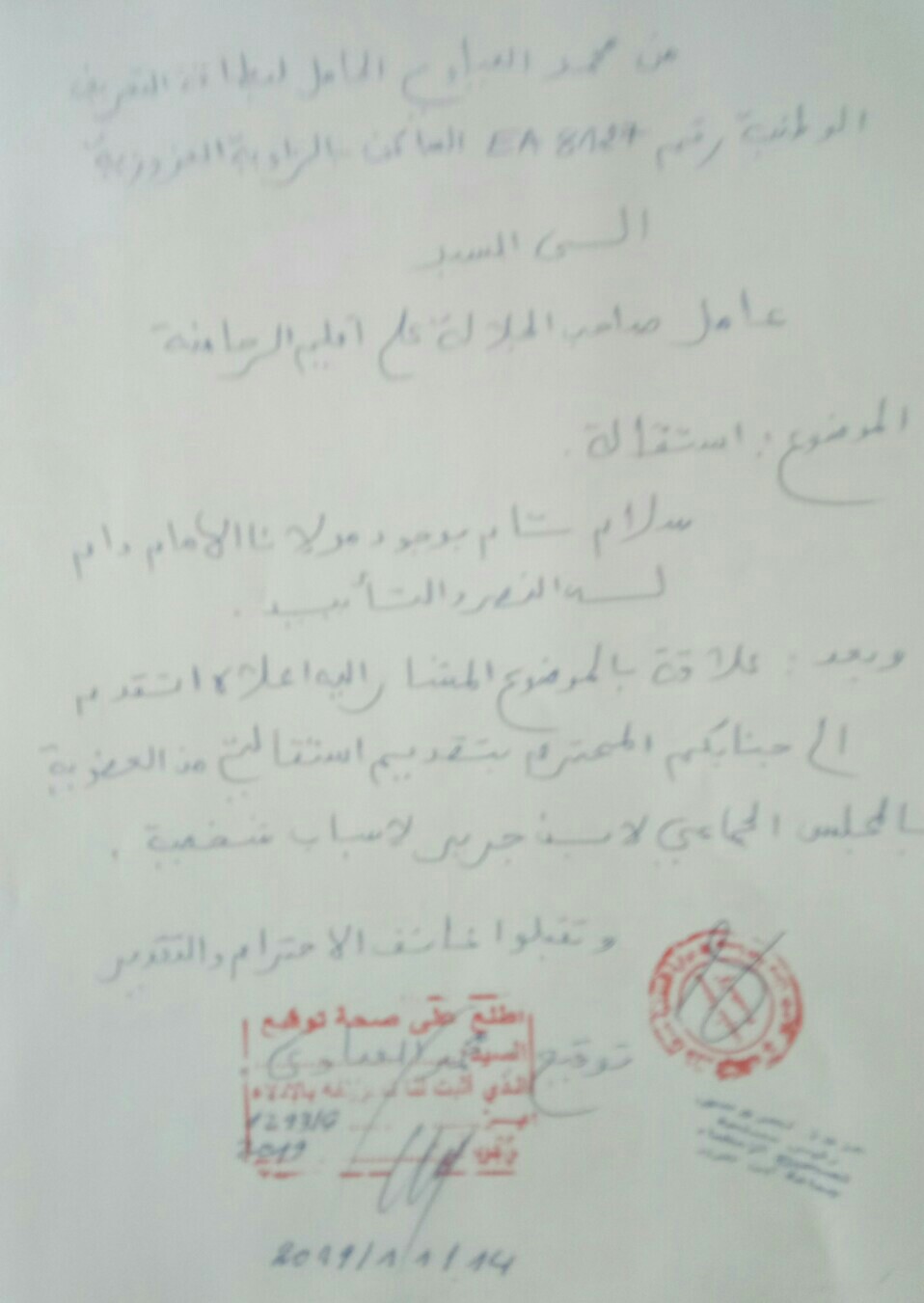 محمد العيادي يضع استقالته بين يدي السلطة الوصية بعمالة الرحامنة.