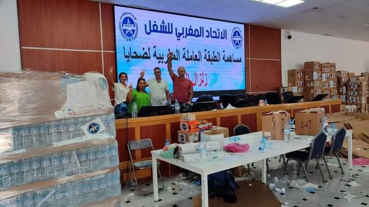 الاتحاد المغربي للشغل كباقي مكونات الوطن لم يخرج عن هذه البيئة وهذا الشعور ولم يركن لبيانات التضامن والمواساة ولم يبق حبيس معجم مفرداته وكلماته التي لم تتخط مدار ومكاتب المقرات،فبعدما عبر عن موقفه الانساني والاجتماعي نظير الفاجعة التي المت بالبلاد يوم الجمعة 8 شتنبر2023 الماضي.استنفر اجهزته الداخلية في تعبئة جماعية من اجل القيام بالمتعين ومايمليه قانونه الاساسي والداخلي من اجل خدمة الوطن في مثل هذه النوازل .عاينا كيف بدات تخرج المبادرات تباعا من كل المجاليات وبدون استثناء استجابة لوثيقة التعميم الداخلي الصادرة عن الأمانة الوطنية يوم 11شتنبر2023 والتي اعطت توجيها نظرا لاستعجالية الموقف وخطورته كذلك ان تتجند كل مكونات الاتحاد من اجل اخذمبادرات نوعية لمساعدة العالقين في المناطق المنكوبة في كل من الحوز وشيشاوة وتارودانت ووارزازات وعلى ضوئه كثفت المجاليات من اجتماعاتها واصبحت المقرات امكنة لاستقبال التبرعات في جميع مناطق المغرب ، وشاهدنا كيف كان العمل متقنا وتم تنظيم كل المعدات والتجهيزات ووسائل لزيارة المناطق المنكوبة . كل هذا العمل الجبار والذي دبره مناضلو ومناضلات الاتحاد المغربي للشغل من اجل اغاثة اخوانهم واخواتهم هناك . كانت الصور الموثقة للحظة تجسد معاني راقية من التضامن والتلاحم .