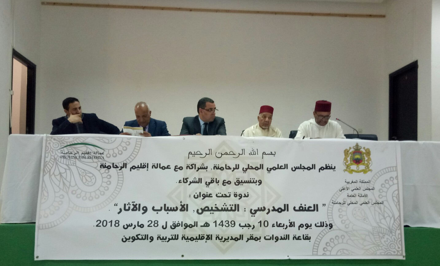 ترأس الكاتب العام لعمالة الرحامنة يوسف خيار زوال الاربعاء 28مارس 2010 بمركب الندوات بالمديرية الاقليمية للتربية بمدينة ابن جرير ، ندوة تحت عنوان : العنف المدرسي ، التشخيص، الأسباب والآثار ، من تنظيم المجلس العلمي بالرحامنة وبشراكة مع عمالة الاقليم ، وبحضور الاستاذ السمامي نائب وكيل ألملك بالمحكمة الابتدائية بابن جرير ، والمدير الاقليمي للتربية بالرحامنة ، واعضاء المجلس العلمي بنفس الاقليم ، واساتذة متخصصين في علم الاجتماع وعلم النفس ، وفعاليات عسكرية وامنية ومدنية ، والصحافة المحلية، عدة مداخلات القيت في هذا اليوم بعد ايات بينات من الذكر الحكيم ، افتتحت الندوة بمداخلة جد قيمة للكاتب العام لعمالة الرحامنة يوسف خيار ، تطرق من خلالها الى ظاهرة العنف المدرسي التي استفحلت بشكل مريب في السنوات الاخيرة ، واصبحت تؤرق المجتمع العالمي والمغربي على حد السواء ، ليخلص في مداخلته الى ضرورة البحث عن اليات ناجعة وفعالة للحد من هذه الظاهرة الغريبة عن قيمنا الدينية المسلمة وعلىالاسرة المغربية العريقة :
